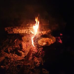 Nasze pokazowe danie to pieczone w ognisku ziemniaki z cebulą spożywane w trybie slow. Uzupełniane piwem z rzemieślniczej produkcji daje niepowtarzalne wrażenia – powrotu do prostego, nieskażonego cywilizacją jedzenia.
